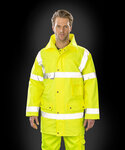 Safety jacket with 3M reflective silver 5cm bands. Concealed hood, inside pocket, pockets with flaps and stud fastenings, mobile phone pocket, fully taped waterproof seams. Conforms to 89/686/EEC directive. Concealed access for print and embroidery.
