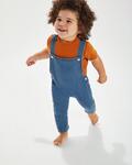 Straps with adjustable popper fasteners, High back and drop crotch, No centre front and back body seam for optimum decoration potential, Popper fastening on sides, jeans style stitching and straight bottom hems, Tear-off label, Organic Content certified to the OCS, Made from Oeko-Tex Standard 100, GOTS certified, *Height: 60/66cm 66/76cm 76/86cm 86/93cm 92/98cm